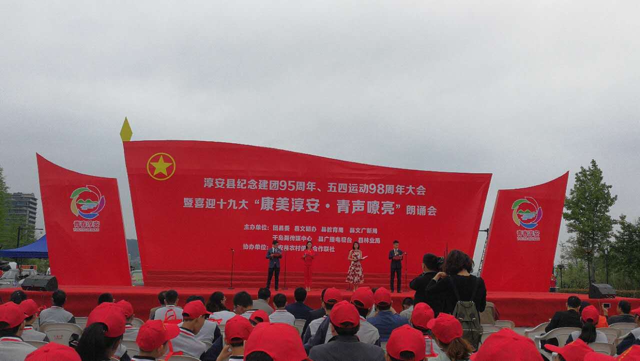 我院分团委副书记、14法汉双播班李奥博,14英汉双播2班於许蝶受邀参加浙江省淳安县纪念建团95周年、五四运动98周年大会暨喜迎十九大“康美淳安·青声嘹亮”朗诵会。